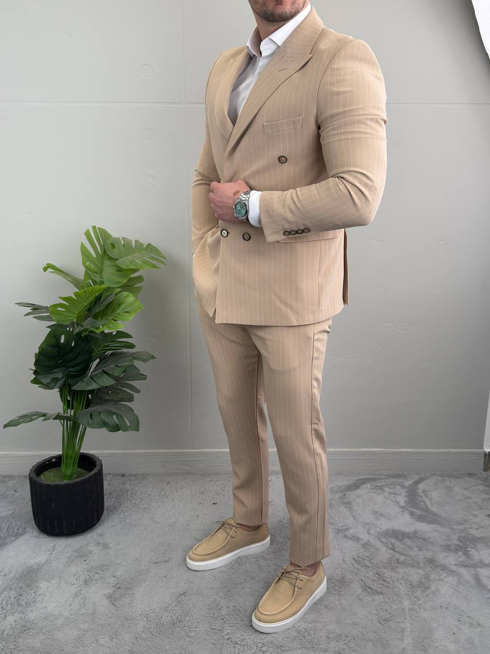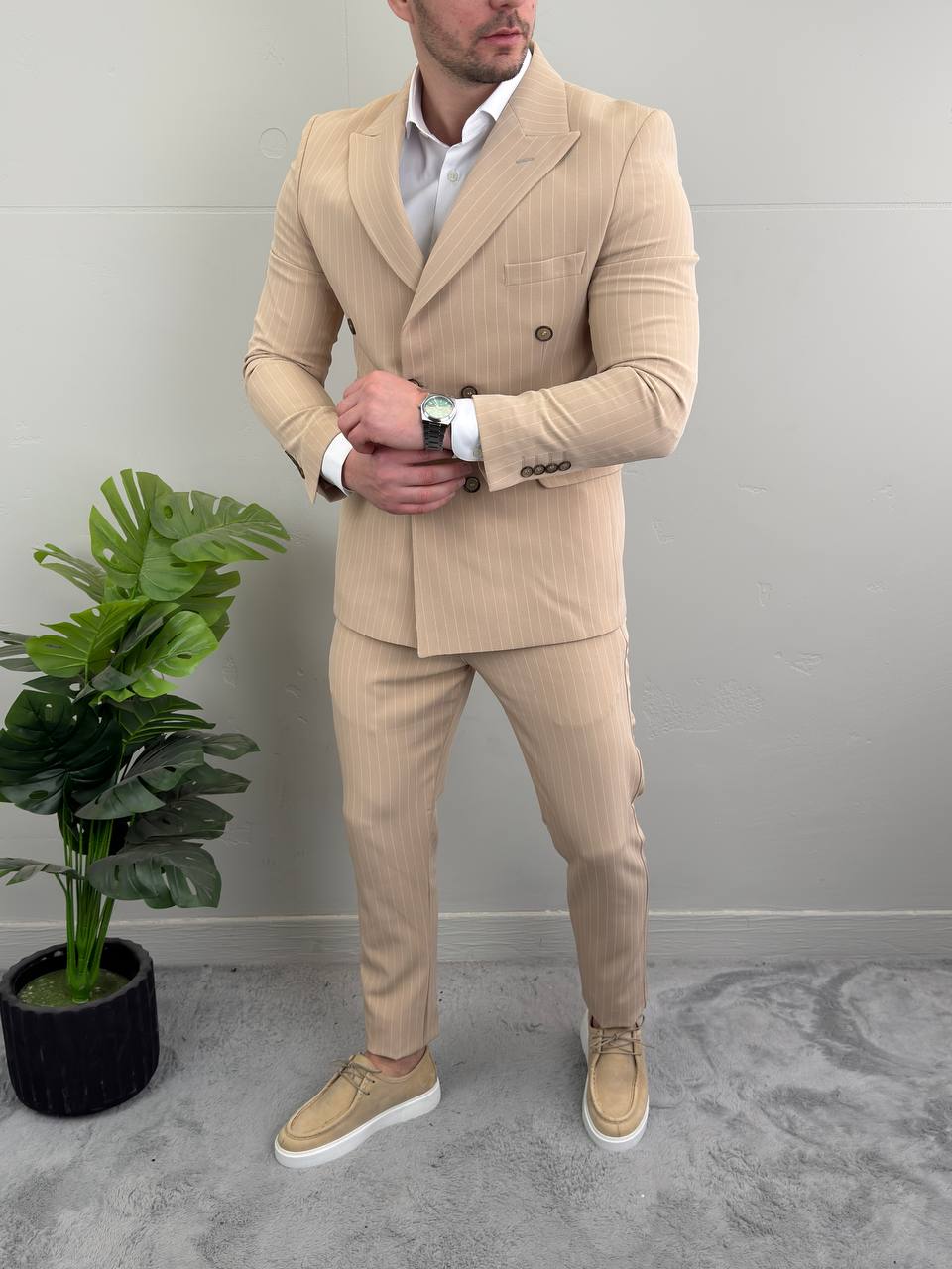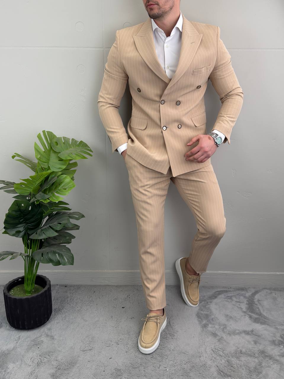 Bež odelo na pruge