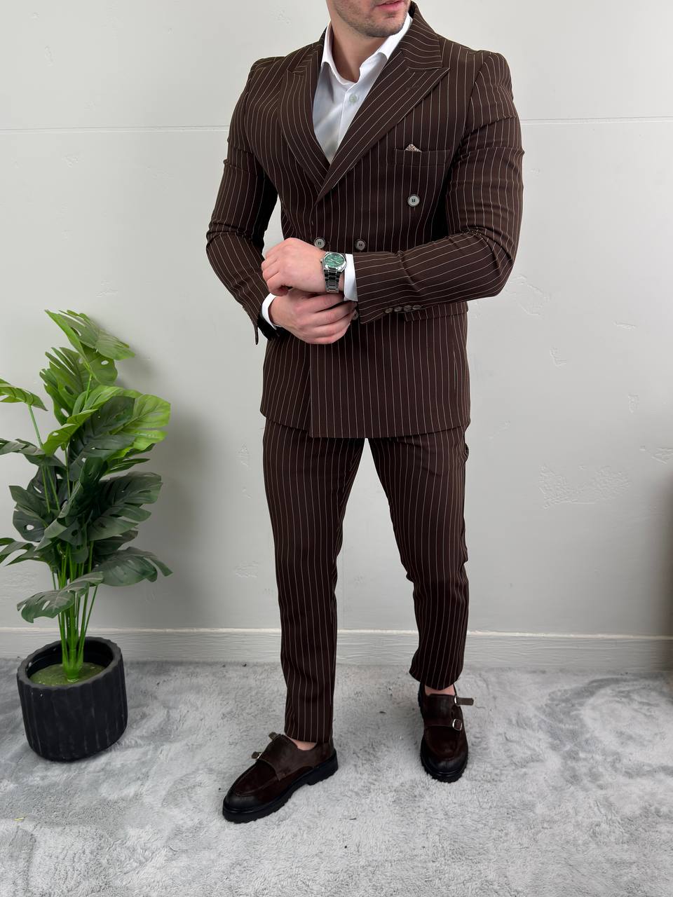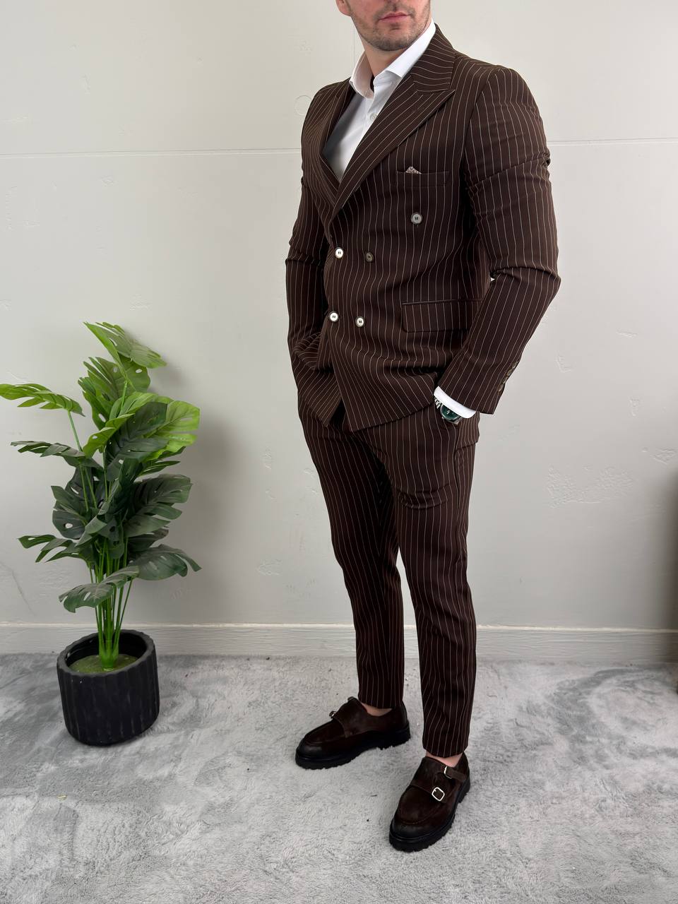 Braon odelo na pruge
