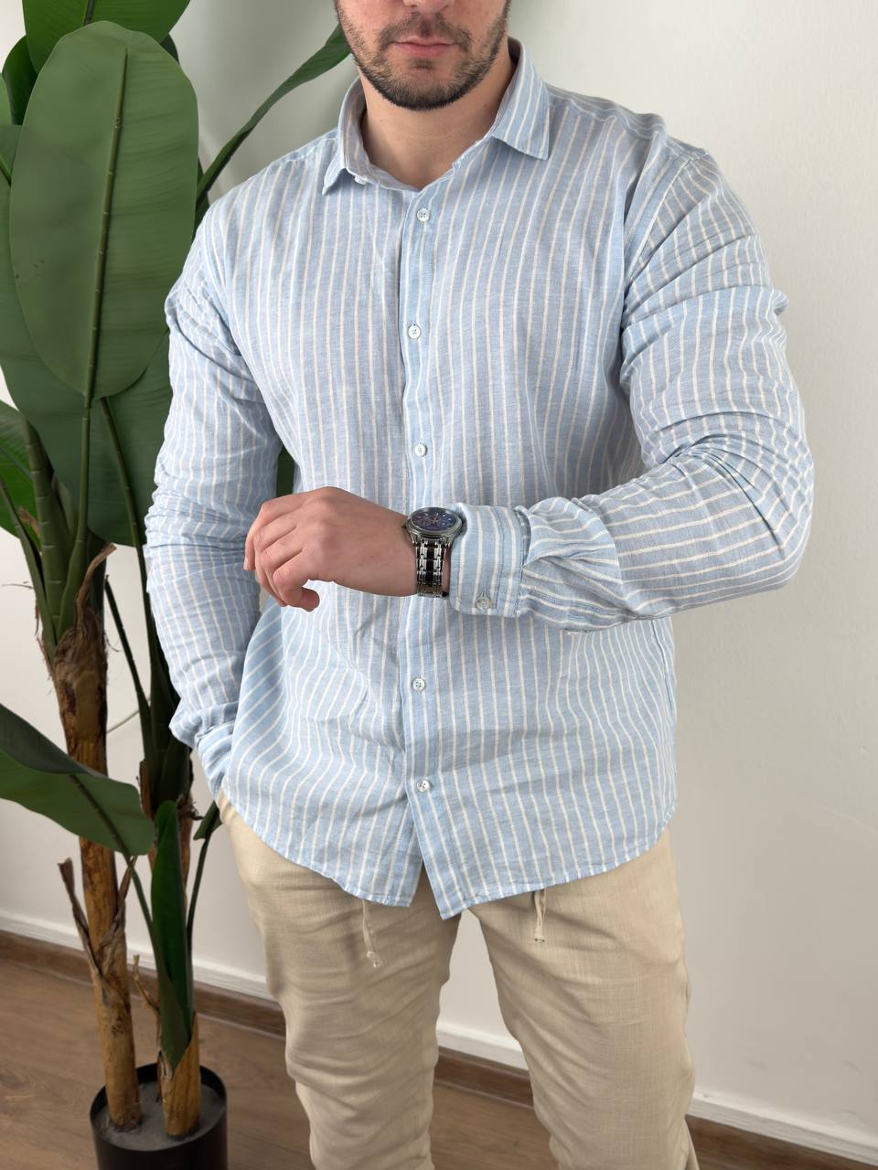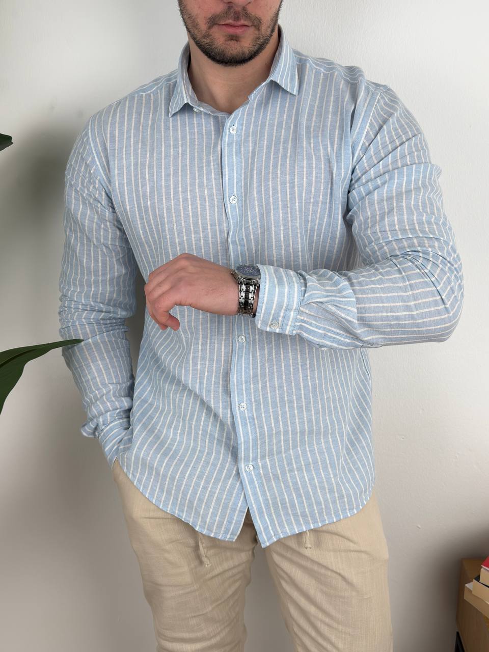 Lanena košulja koja diše zajedno s tobom — idealna kada je važno izgledati uredno, a da se pritom ne osećaš zarobljenо.