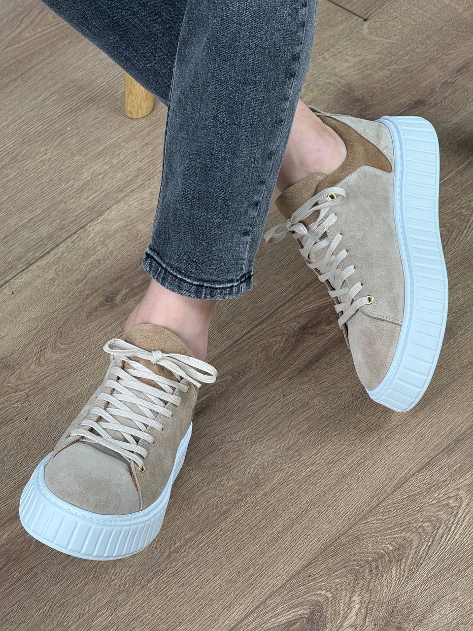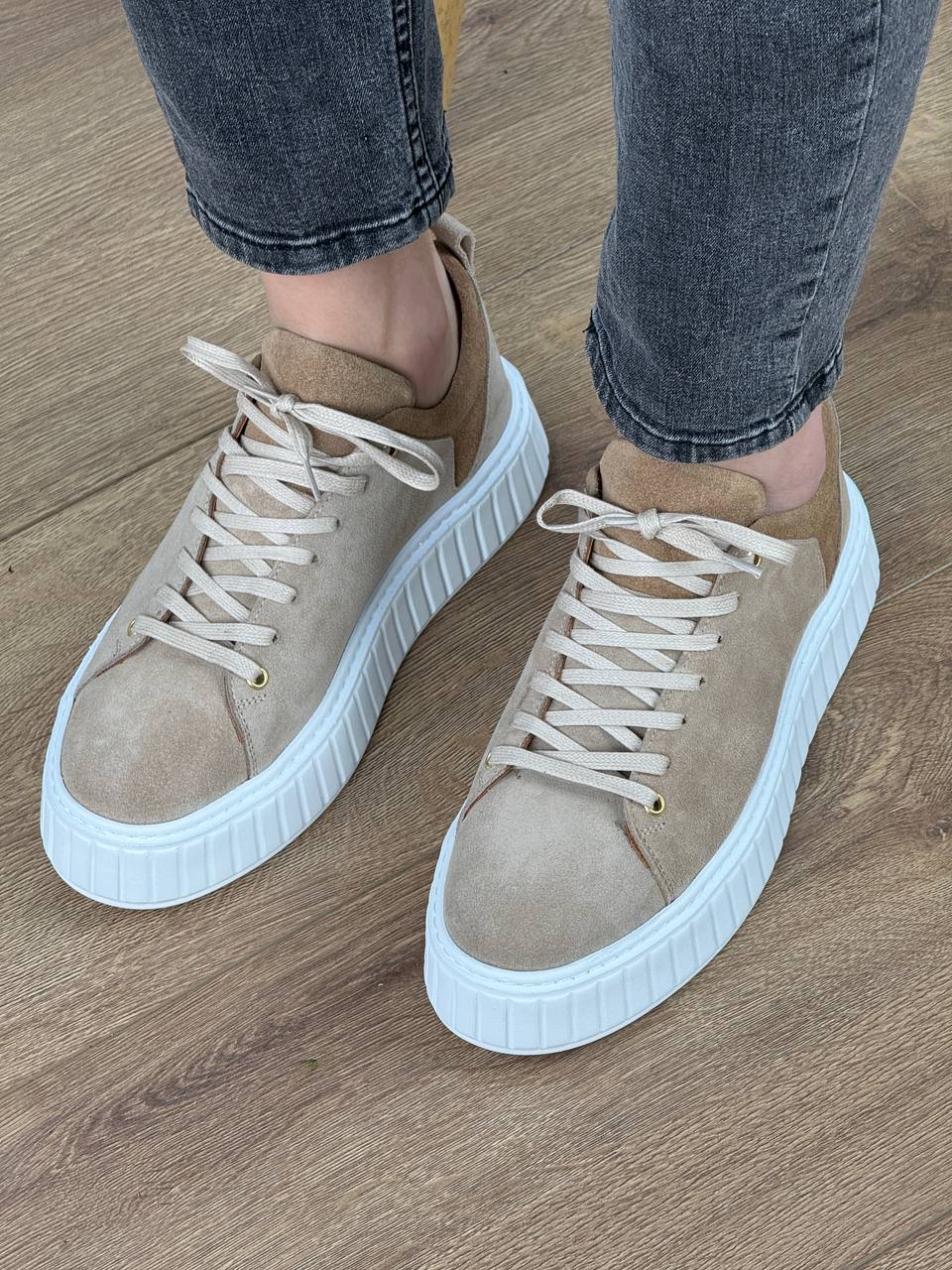 Muške kožne patike C4264 napravljene su od prirodnog velura – materijala mekanog na dodir koji s vremenom sve lepše izgleda. Deblji beli đon sa prošivom daje čvrstu osnovu i vizuelno lagani izgled koji funkcioniše i uz farmerke i uz chino pantalone.