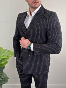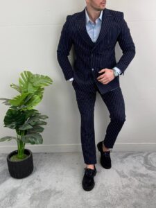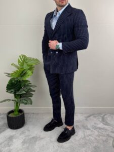 Muško odelo na pruge od poliestra, viskoze i elastina.