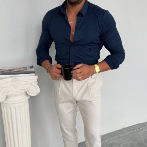 – Tamne pantalone + svetlo plava = siguran izbor za posao