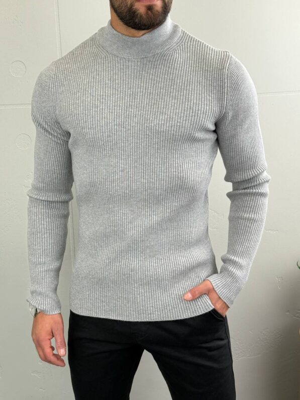 Rebrasta tekstura dodaje dubinu i eleganciju, dok visok okovratnik pruža dodatnu zaštitu od hladnoće.