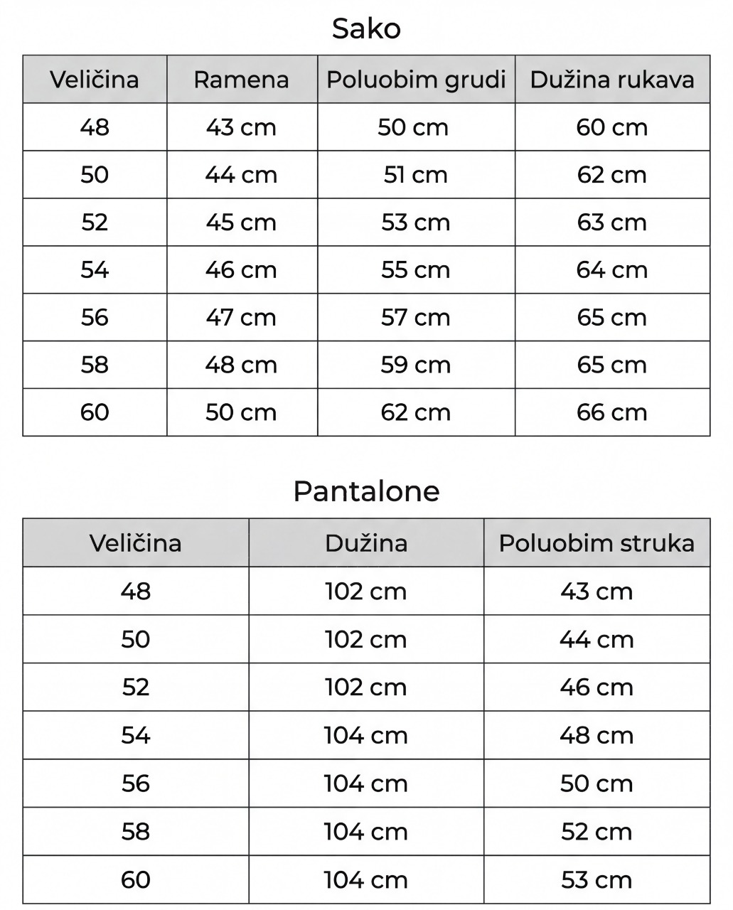 Tabela veličina